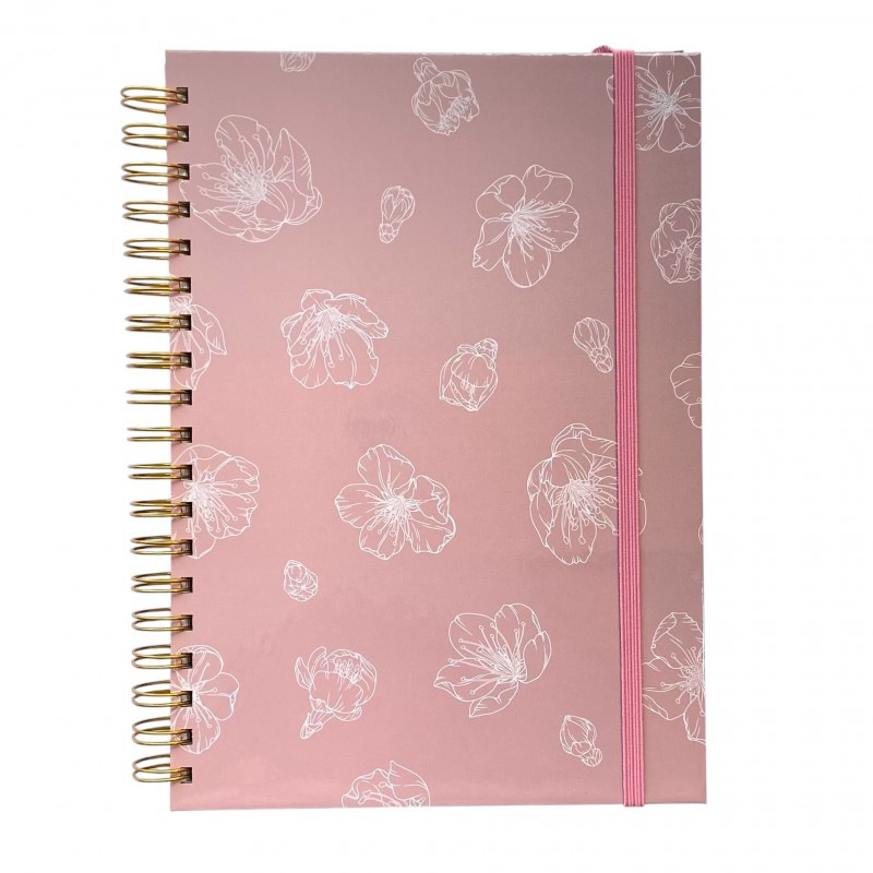Cuaderno Flores Blancas Grandes Fondo Rosa