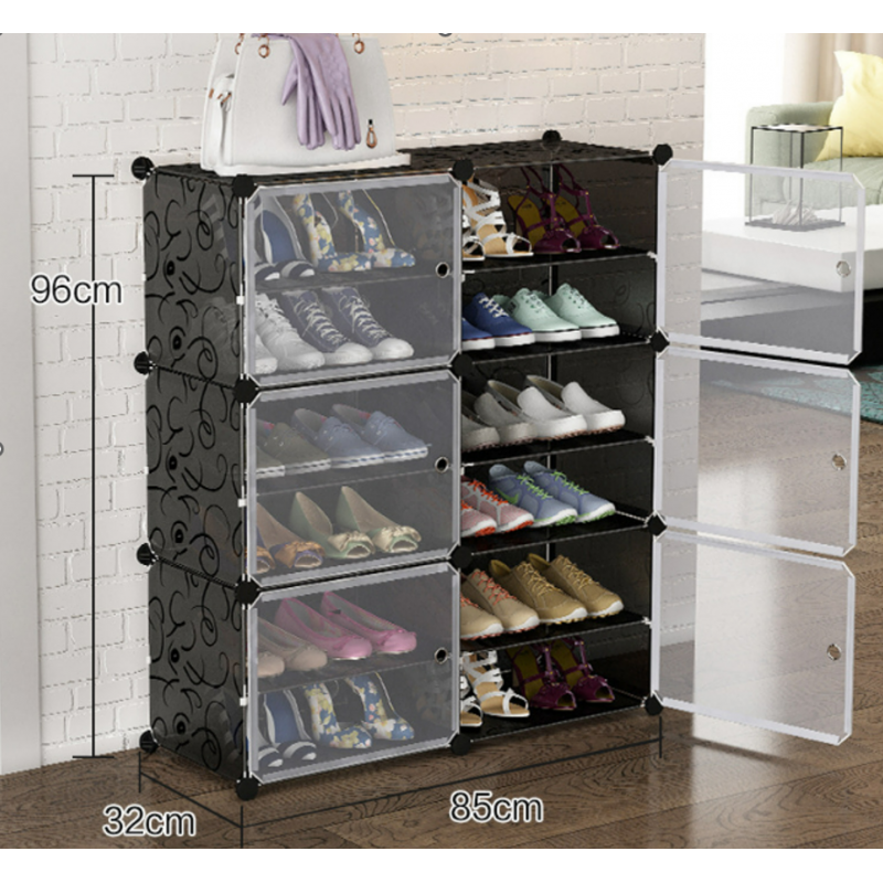 Organiza y protege tu calzado con este zapatero plástico de 6 niveles color negro, un mueble funcional y moderno ideal para cualquier hogar. Su diseño modular con puertas plásticas mantiene los zapatos libres de polvo, aportando orden y limpieza.
