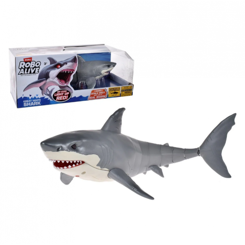 Este tiburón robótico cobra vida en el agua gracias a la tecnología activada por agua de ZURU. Con movimientos realistas, ojos que se iluminan en rojo y una aleta dorsal que se mueve como un tiburón real, ofrece una experiencia de juego inmersiva. Ideal para niños a partir de 3 años, este juguete es perfecto para juegos en la piscina, bañera o en seco. Requiere 3 baterías AAA (no incluidas).