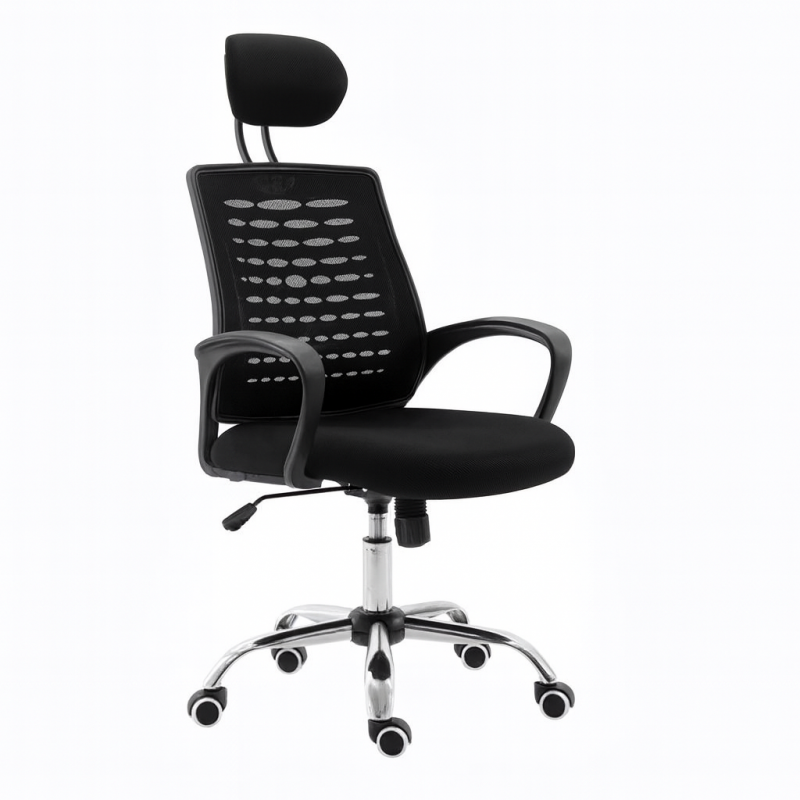 Disfruta Esta cómoda Silla para Escritorio, Ideal para Silla Oficina, Silla PC, Silla Ejecutiva. La silla está cubierta de espuma de alta densidad. Asiento de madera contrachapada y base cromada metálica de 30 Cm con 5 ruedas. Altura regulable a gas. Recubre y soporta toda tu espalda con un respaldo para tu cuello superior.